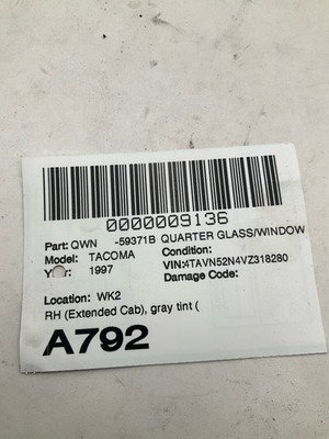 Be the first to review “1995-2000 TOYOTA TACOMA Quarter Glass Window Right Passenger Extended Cab OEM”