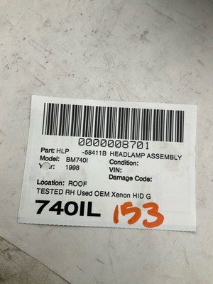 HomeShopHeadlight Assemblies1995-2001 BMW 740I Headlamp Assembly Right Passenger Tested Xenon Hid OEM Tested