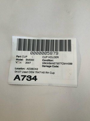 • Additional notes: 04-07 Used Oem 7047145 Rh Cup Holder Dash Mounted Good Condition See Pictures Tested