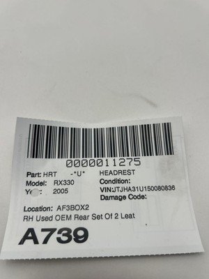 HomeShopSeats2005-2006 LEXUS RX330 Headrest Rear 2nd Row Set Of 2 Leather Left and Right OEM