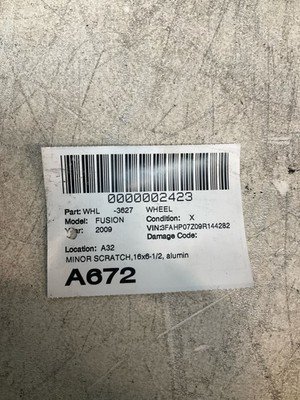 • Additional notes: Minor Scratches,16×6-1/2, Aluminum (pnted, 5 Smooth Spokes)