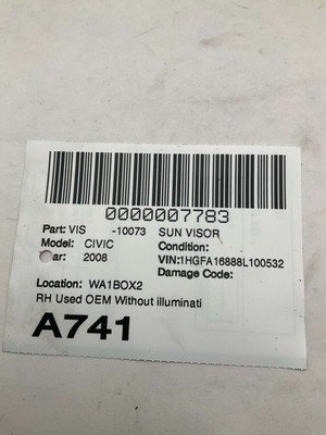 HomeShopSun Visors2006-2011 HONDA CIVIC Sun Visor Right Passenger Side without Illumination OEM