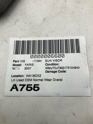 HomeShopSun Visors2006-2011 Toyota Yaris Sun Visor Driver Side OEM 7432052771B1