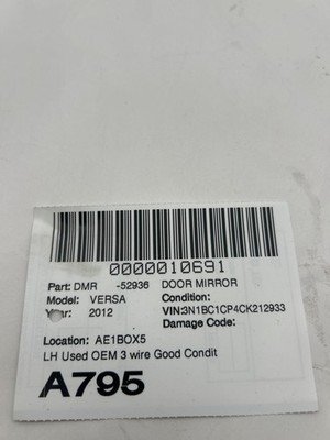 Be the first to review “2008-2012 NISSAN VERSA Door Mirror Left Driver 3 Wire Power Hatchback OEM”