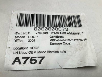 Be the first to review “2008-2015 MINI COOPER Headlamp Assembly Left Driver OEM Halogen”