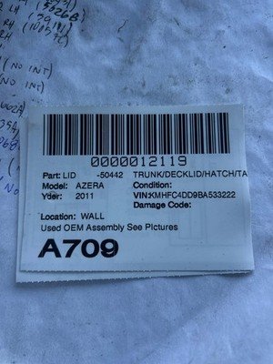HomeShopHatches & Trunk Lids2010-2011 HYUNDAI AZERA Trunk Decklid Black Onyx Pearl OEM 692003L531