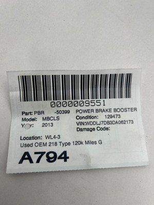 HomeShopMaster Cylinders2012-2013 MERCEDES CLS Power Brake Booster 4.6L Tested 129k Miles OEM