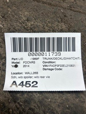 Be the first to review “2012-2014 FORD FOCUS SE Sedan Trunk Decklid Hatch Sterling Gray Metallic OEM”