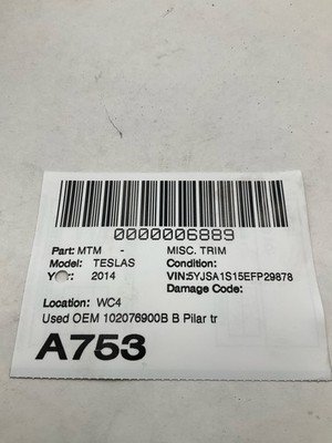 HomeShopTrim2012-2016 TESLA S B Pillar Trim Panel Left Driver Side OEM 102076900B