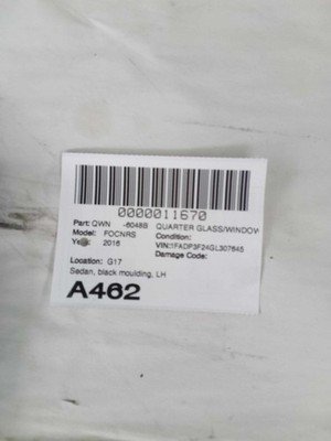 Be the first to review “2012-2018 FORD FOCUS Quarter Glass Window Left Driver Sedan with Black Moulding”