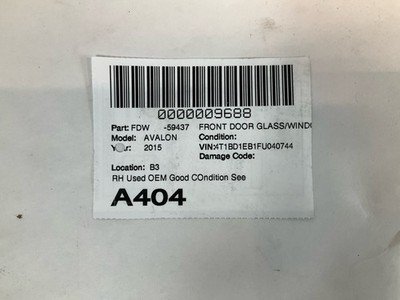 Be the first to review “2013-2018 TOYOTA AVALON Front Door Glass Window Right Passenger OEM 6810107030”
