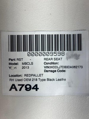 • Additional notes: Used Oem 218 Type Black Leather Lower Rh Bottom Cushion See Pictures