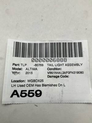 Be the first to review “2014-2015 NISSAN ALTIMA Tail Light Assembly Left Rear Driver Body Mount Sedan”