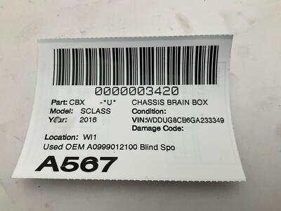 • Additional notes: Used Oem A0999012100 Blind Spot Radar Control Module See Pictures