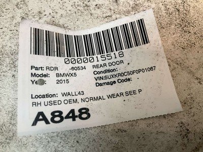 Be the first to review “2014-2018 BMW F15 X5 Right Passenger Rear Door Grade A 75k Alpine White OEM”