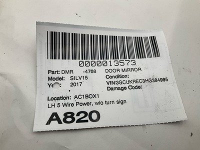 CHEVROLET 1500 SILVERADO PICKUP 18 power mirror, w/o turn signal; (opt DL8), body color, LH