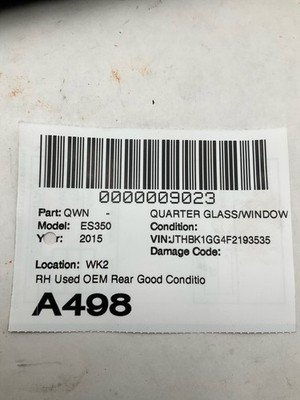 HomeShopAuto Glass2015-2016 LEXUS ES350 Quarter Glass Window Right Rear Passenger OEM 60k Miles
