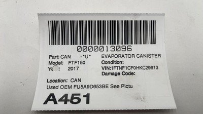 Be the first to review “2015-2020 FORD PICKUP F150 Evaporator Charcoal Canister 5.0L OEM FU5A9D653BE”
