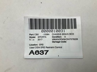 • Additional notes: Used Oem Srs Restraint Control Module See Pictures