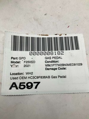 HomeShopPedal Assemblies, Pads & Parts2018-2022 FORD F250 SD PICKUP Gas Accelerator Pedal OEM HC3C9F836AB